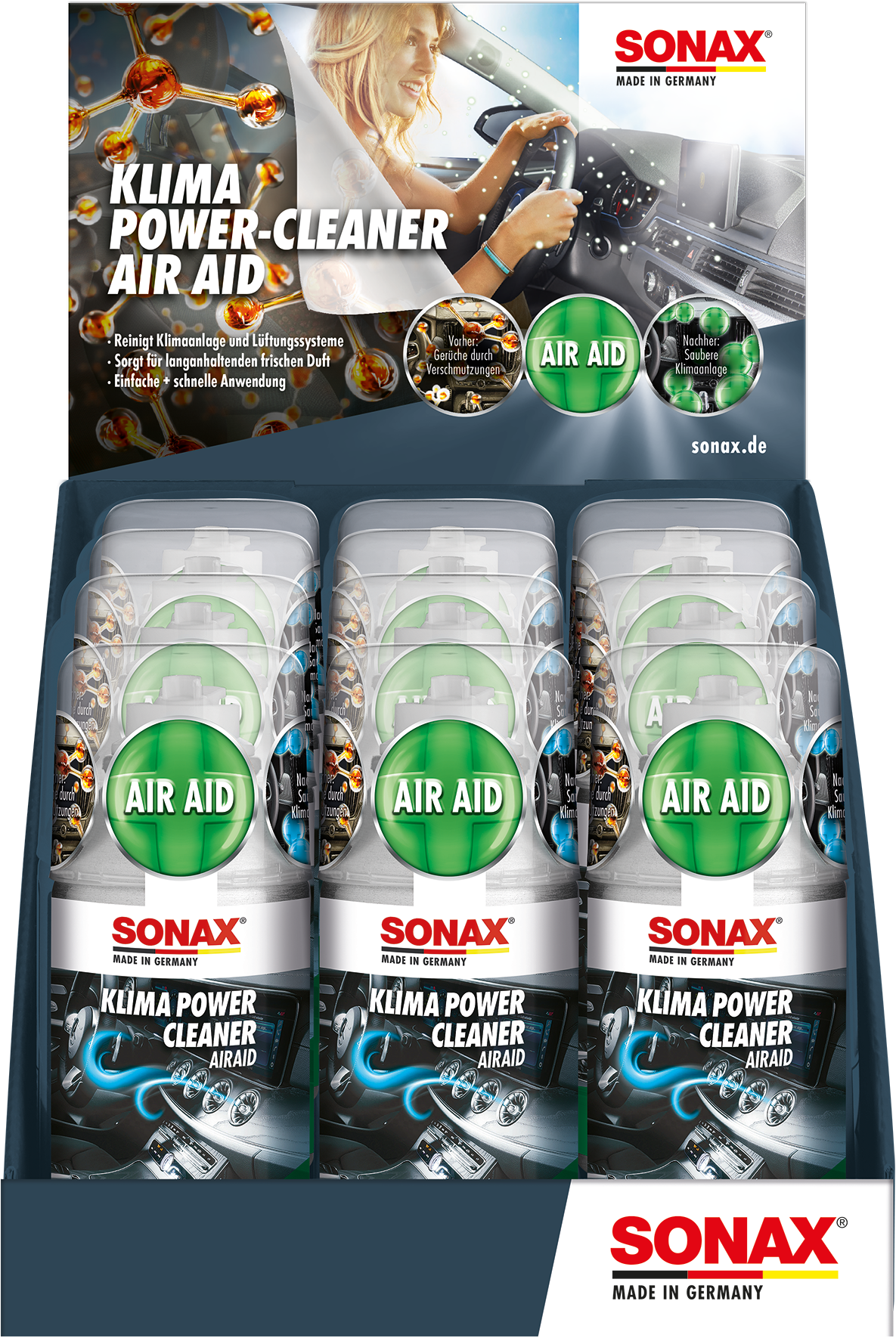 SONAX KlimaPowerCleaner AirAid symbiotisch Thekendisplay gemischt |